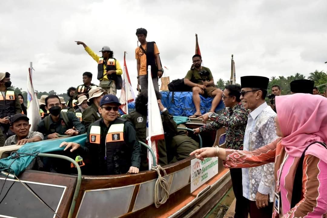 MATTANEWS.CO, BATANGHARI – Sehari usai menyambut kedatangan Tim susur Sungai Batanghari Swarnabhumi, Wakil Bupati Batanghari Bakhtiar kembali melakukan pelepasan keberangkatan Tim susur Sungai Swarnabhumi dari Pasar Lamo Muara Tembesi, Sabtu (27/08/2022).