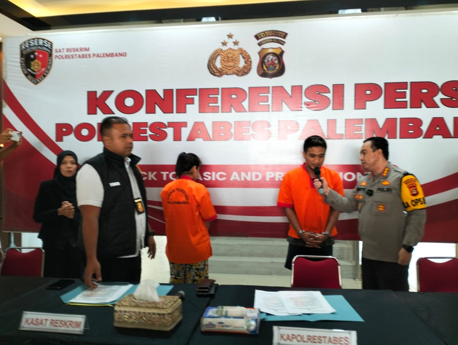 “Tertangkapnya kedua tersangka ini saat petugas menindaklanjuti salah satu laporan korban pencurian sepeda motor, korban Thomas Kurniawan, di Jalan KH Azhari Tembusan Lorong Pangi Kelurahan Tangga Takat Kecamatan SU I Palembang, Senin (23/9/2024) pukul 19.08 WIB,” papar Kapolrestabes Palembang, Kombes Pol Harryo Sugihhartono, didampingi Kasat Reskrim, AKBP Yunar Hotma Parulian Sirait saat press release.