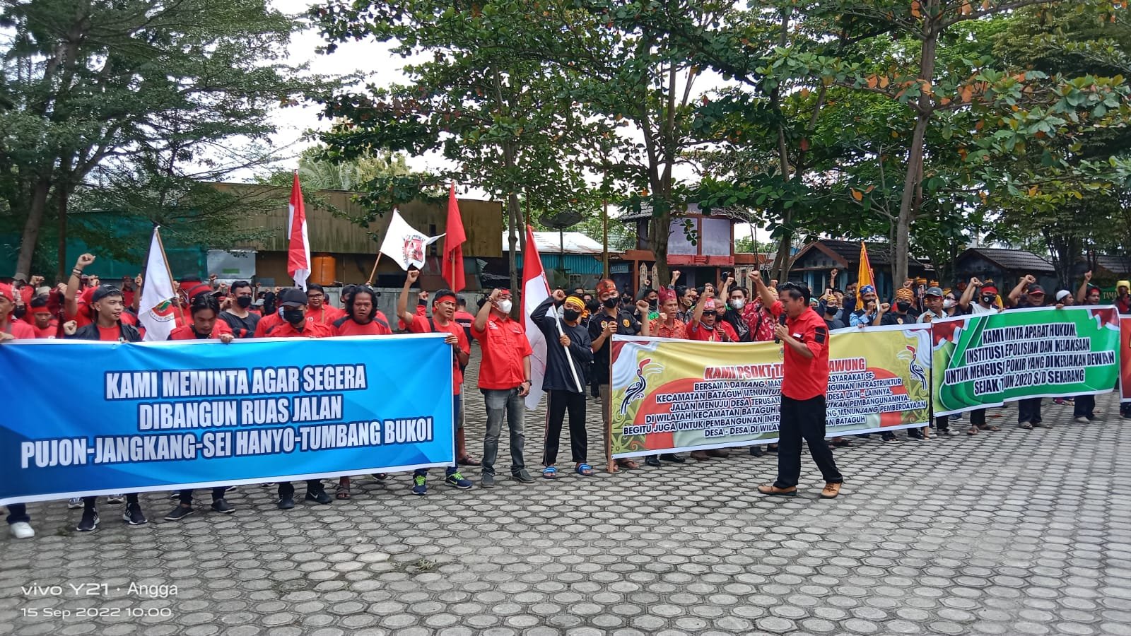 Aspirasi yang disampaikan melalui orasi di depan kantor DPRD Kapuas dan didengarkan langsung sejumlah Anggota DPRD Kapuas yang kemudian berlanjut ke dalam gedung kantor DPRD melalui beberapa perwakilan massa.