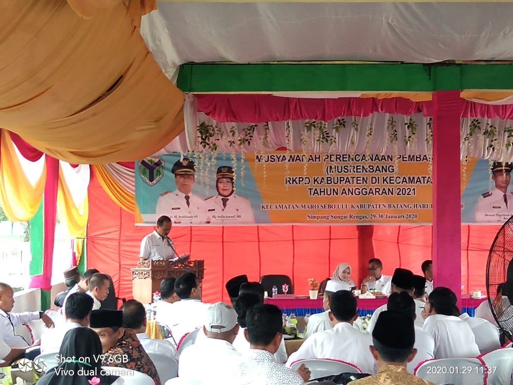 BATANGHARI, Mattanews.co – Sekretaris Daerah (Sekda) Pemerintah Kabupaten (Pemkab) Batanghari Bakhtiar menghadiri kegiatan musyawarah perencanaan pembangunan daerah (Musrenbang) Rencana Kegiatan Pembangunan Daerah (RKPD) Kecamatan Maro Sebo Ulu (MSU) tahun 2020, Rabu (29/01/2020).