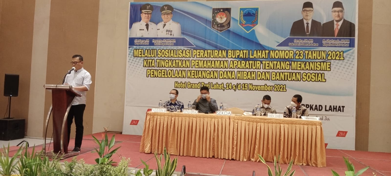 MATTANEWS.CO, LAHAT -Bertempat di Ballroom Hotel Grandzury Lahat, Sekda Lahat, Chandra SH MM membuka acara Sosialisasi Peraturan Bupati Lahat Nomor 23 tahun 2021, minggu (14/11/2021).