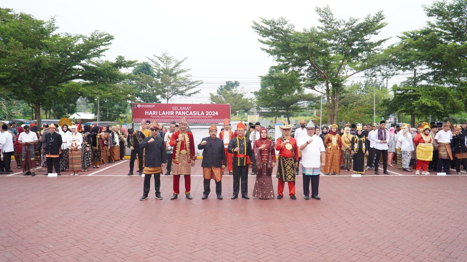 Dengan penuh semangat dan semarak mengenakan pakaian adat, pelaksanaan Upacara Bendera Peringatan Hari Lahir Pancasila tahun 2024 berjalan dengan penuh khidmat.