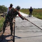 Serka Sugito anggota koramil 01 selaku tim satgas TMMD mengatakan, para anggota Satgas bahu membahu dengan warga bekerja mengejar target di pembuatan Betonisasi Jalan Dusun Pening Desa Sendang Kulon.