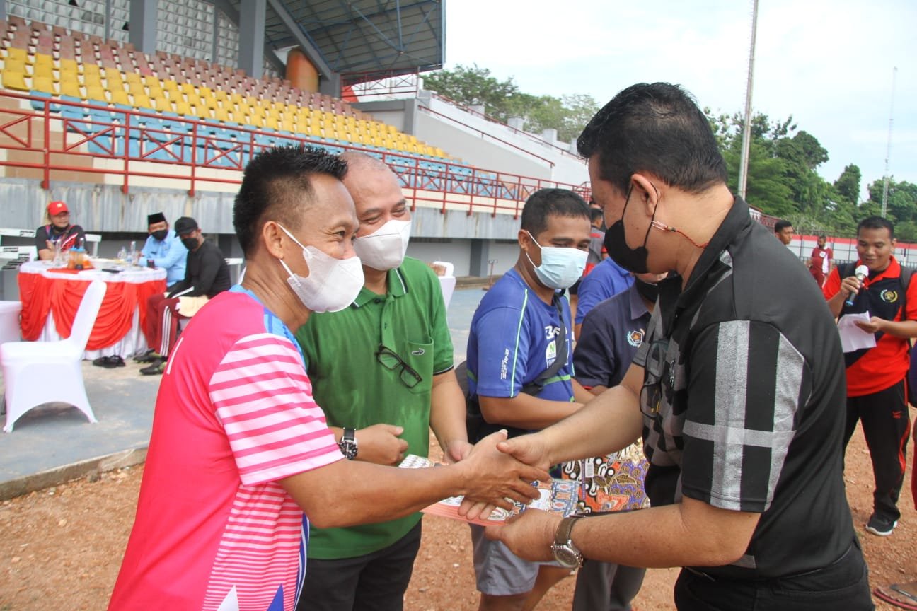MATTANEWS.CO, MUBA – Persatuan Wartawan Indonesia (PWI) Kabupaten Musi Banyuasin menutup rangkaian kegiatan Hari Pers Nasional (HPN) dan Hari Ulang Tahun PWI ke-76 di Stadion Serasan Sekate dengan pertandingan persahabatan sepakbola dengan Jajaran Polres Muba, Jumat (25/2/2022).