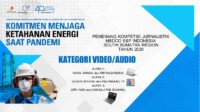 Bersama ini, diumumkan para pemenangan Lomba Karya Jurnalistik – Komitmen Jaga Ketahanan Energi di Tengah Pandemi, diantaranya untuk kategori features dimenangkan Lisma Novi dari Harian Tribun Sumsel, Muhammad Asri dari Suara Sumsel News dan Bethanica Susmanda dari Harian Palembang Ekspres.