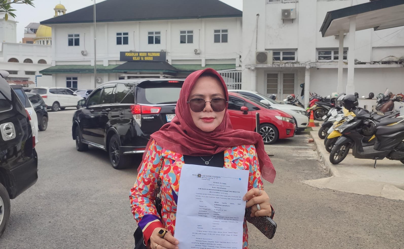 Saat ditemui di PN Palembang, Agustina Novitasari menyampaikan rasa syukurnya.