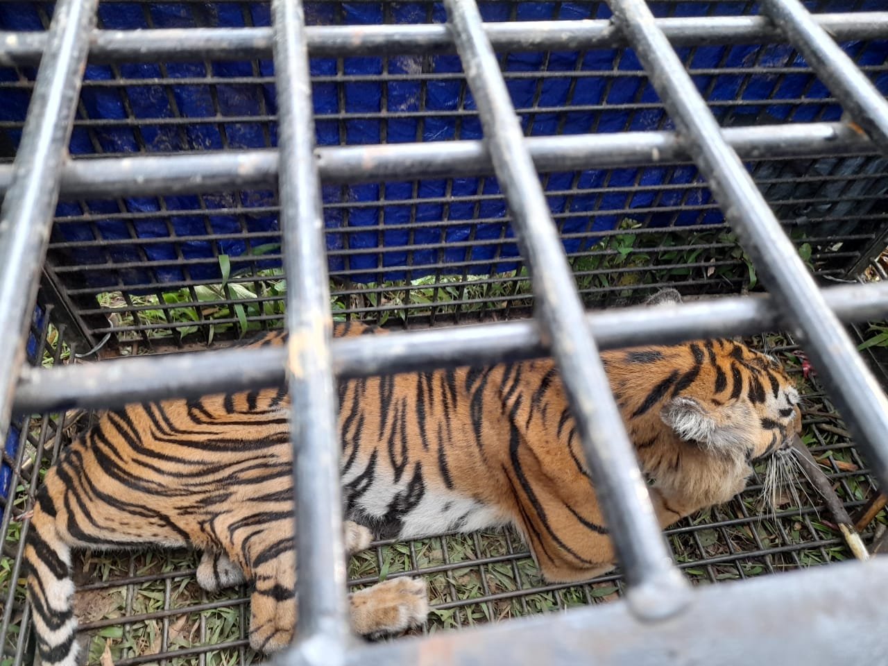 MATTANEWS.CO, MERANGIN – Harimau yang sudah menerkam tiga warga Merangin akhirnya berhasil diamankan. Harimau tersebut berhasil ditangkap setelah terjerat perangkap yang dipasang oleh tim BKSDA Jambi, Sabtu Sore (16/10/2021)