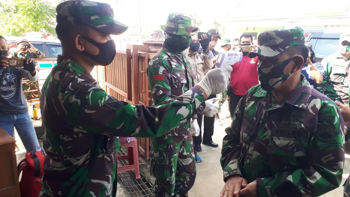 Selain para satgas dan warga yang harus menjalani protokol kesehatan saat beraktivitas, semua tamu yang akan berkunjung ke lokasi TMMD juga harus mematuhi aturan sesuai protokol kesehatan. Mulani jalani pemeriksaan suhu tubuh, memakai masker.