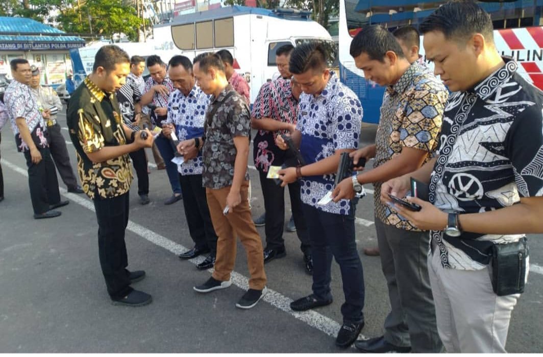 PALEMBANG, Mattanews.co – Seperti biasa, Jajaran Subdit Regident Ditlantas Polda Sumsel diperiksa kelengkapan dan kerapian kedinasannya, guna menghindari penyalahgunaan senpi. Pemeriksaan yang terkesan dadakan itu, dipimpin Kasi STNK Kompol Andi Kumara SIk SH di Halaman Direktorat Lalu Lintas Polda Sumatera Selatan, Sabtu (27/07/2019).