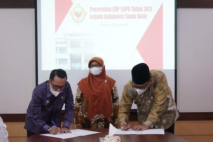 MATTANEWS.CO, TANAH DATAR – Kabupaten Tanah Datar kembali meraih sekaligus mempertahankan opini Wajar Tanpa Pengecualian (WTP) untuk sepuluh kalinya secara berturut-turut atas Laporan Hasil Pemeriksaan (LHP) Laporan Keuangan Pemerintah Daerah (LKPD) tahun 2021.
