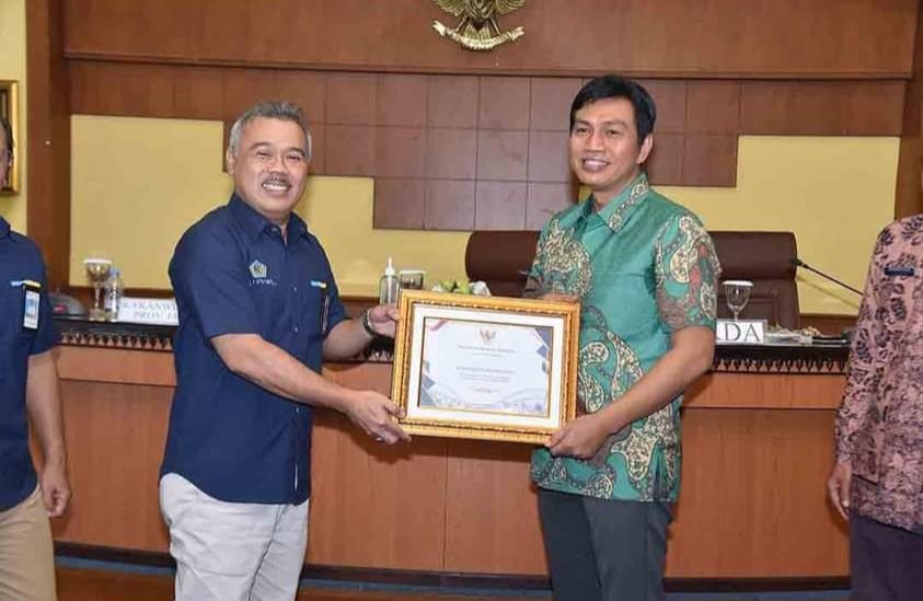 MATTANEWS.CO, BATANGHARI – Secara langsung Bupati Batanghari Muhammad Fadhil Arief (MFA) terima plakat Piagam Penghargaan Opini Wajar Tanpa Pengecualian (WTP) dari Kepala Kantor Wilayah Direktorat Jenderal Perbendaharaan (Kanwil DPJB) Provinsi Jambi Supendi di Ruang Pola Kecil Kantor Bupati Batanghari, Kamis (20/10/2022).