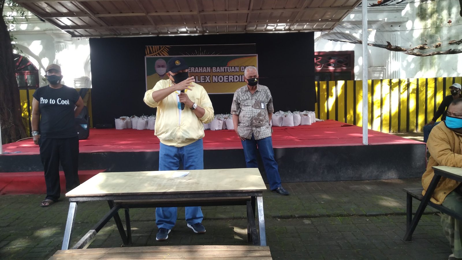 PALEMBANG, Mattanews.co – Mantan Gubernur Sumsel Dua Periode Alex Nurdin memberikan bantuan 100 paket sembako, untuk para seniman kota Palembang, di halaman belakang Museum Sultan Machmud Badaruddin II Palembang, minggu (17/05/2020)