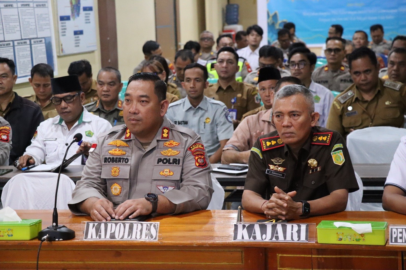 Acara yang digelar via Zoom di Ruang PPKO Polres sekitar pukul 09.20 WIB itu dipimpin langsung Kapolres AKBP Roberto Aprianto Uda, S.I.K., M.H., bersama Wakil Ketua I DPRD Abdul Hamid, Asisten II Pemda Tri Wati, Pasi Intel Kodim 1206 Kapten Inf Safri Doni, Kajari I Ketut Suarbawa, perwakilan PN Putussibau, kepala dinas, pejabat utama Polres, para Kapolsek, dan anggota.
