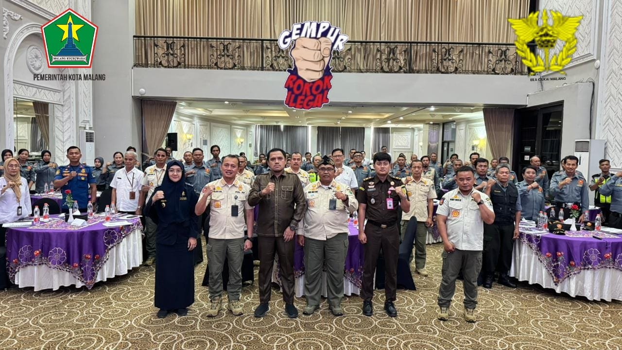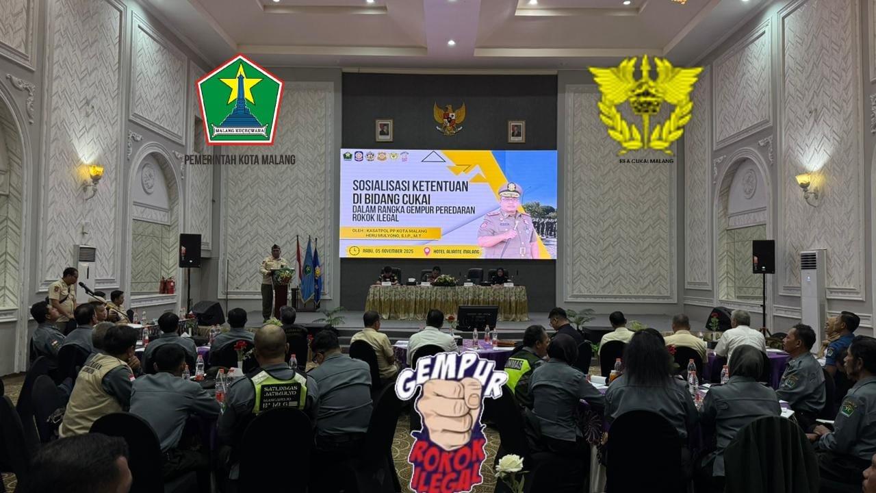 MATTANEWS.CO, MALANG – Pemerintah Kota (Pemkot) Malang terus memperkuat langkah dalam memberantas peredaran rokok ilegal. Sebagai langkah mendukung gerakan tersebut diwujudkan melalui kegiatan Sosialisasi Ketentuan di Bidang Cukai dalam rangka Gempur Peredaran Rokok Ilegal yang menyasar Satuan Perlindungan Masyarakat (Satlinmas) Kota Malang yahg berlangsung di Hotel Aliante, pada pukul 17.00 wib, Rabu (5/11/2025).