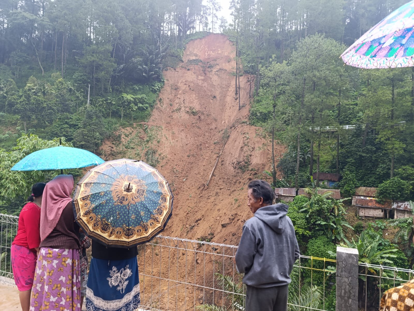 Longsor yang terjadi sekitar pukul 00.30 WIB tersebut mengakibatkan dua akses jalan utama desa terputus total serta menyebabkan kerugian materiil bagi warga setempat.