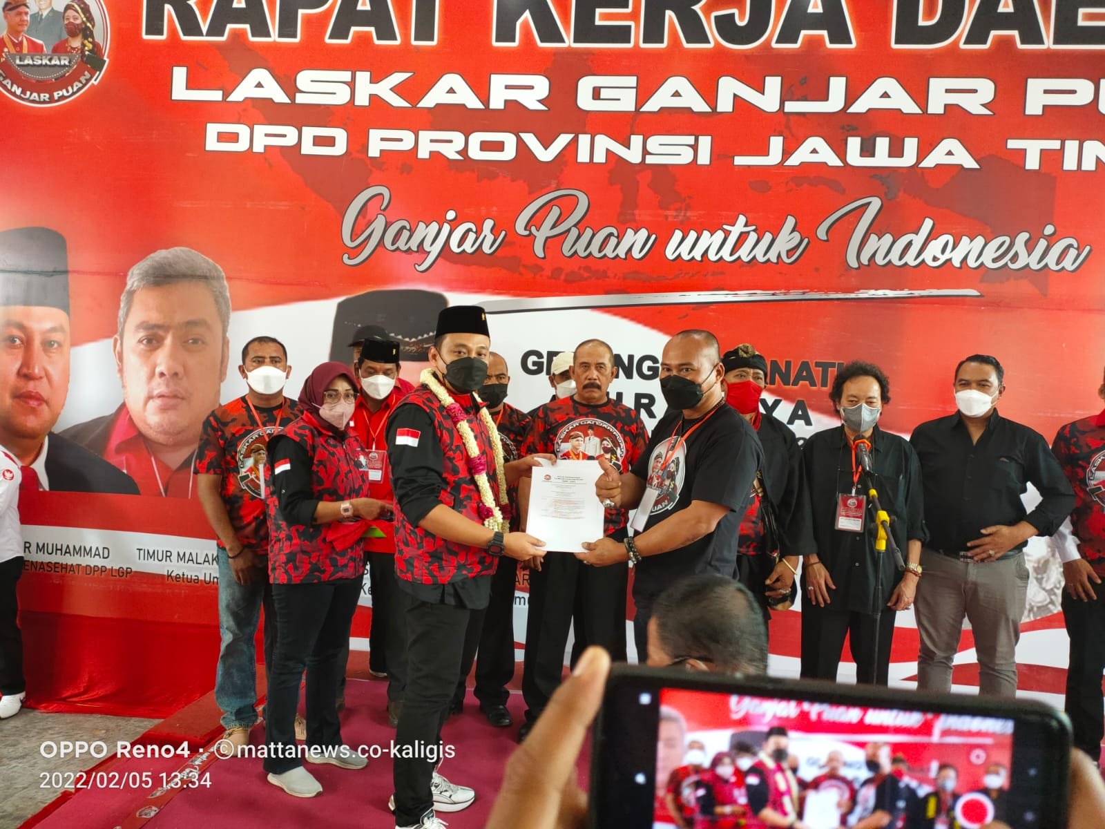 MATTANEWS.CO,TULUNGAGUNG – Dewan Pimpinan Cabang (DPC) Laskar Ganjar-Puan Kabupaten Tulungagung menerima Surat Keputusan (SK) mandat dari Sekretaris Jenderal Dewan Pimpinan Pusat LGP Nawang Andi Kusuma, S.H., M.Kn., bertempat di Gedung Internatio kawasan Jembatan Merah Plaza Surabaya, Sabtu (5/2/2022).