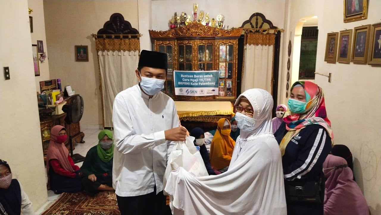 MATTANEWS.CO, PALEMBANG – Wujud kepedulian pada guru ngaji yang terdampak pandemi, Sahabat Kebaikan Nusantara (SKN) memberikan sembako bagi guru TK/TPA BKPRMI di kota Palembang, Jum’at (23/4/21).