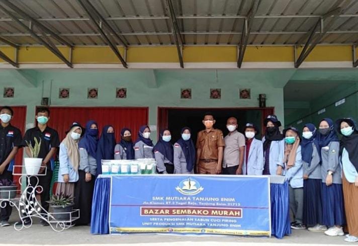 MATTANEWS.CO, MUARA ENIM – Guna memperkenalkan hasil produksi dari praktikum di masa pandemi Covid-19, SMK Mutiara Tanjung Enim adakan Bazar Sembako Murah yang digelar di depan pertokoan, tepatnya di depan rumah Kepala Desa Tegal Rejo Tanjung Enim, Rabu (03/03/2021).