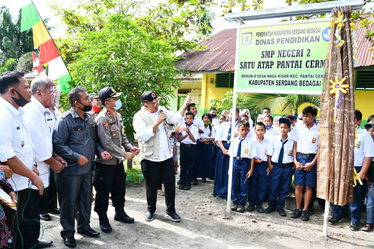 SERGAI, Mattanews.co – Bupati Serdang Bedagai (Sergai) Ir H Soekirman mengapresiasi didirikan SMPN 2 Satu Atap di Dusun IV Desa Nagakisar Kecamatan Pantai Cermin. Pasalnya sekolah itu menjadi solusi agar tidak ada lagi anak-anak putus sekolah terjadi di Sergai