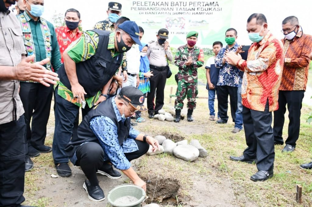 SERGAI, Mattanews.co – Bupati Serdang Bedagai (Sergai) Ir H Soekirman, melakukan Peletakan Batu Pertama Pembangunan Taman Edukasi Dinas Pendidikan Kabupaten Sergai, di Bantaran Sungai Rampah Kecamatan Sei Rampah. Kamis (11/6/2020)