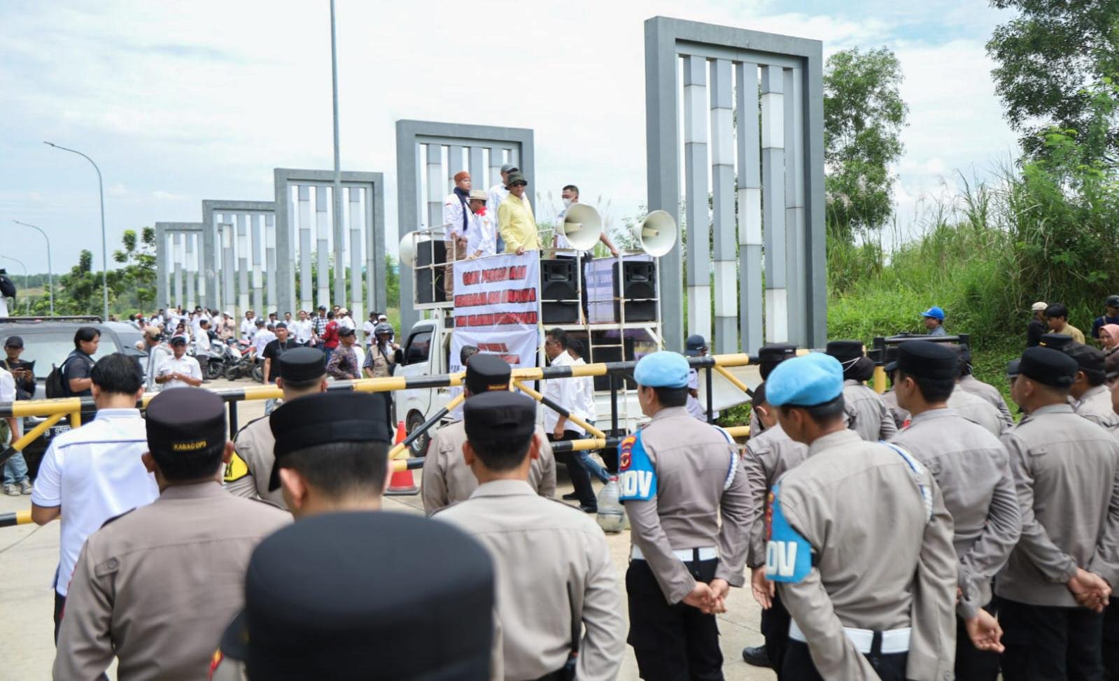 Meski ribuan massa memadati akses jalan utama Telukjambe Barat, aksi dilaporkan berjalan tertib.