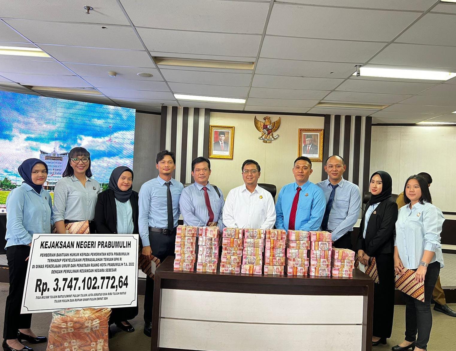 “Alhamdulillah, ini merupakan bentuk kerjasama sinergi antara Pemkot Prabumulih melalui inspektorat, Kejari Prabumulih melalui Datun yang berhasil menyelamatkan kerugian negara hasil temuan BPK RI sebesar tiga koma tujuh milyar lebih pada Dinas PUPR Prabumulih,” kata Kajari Prabumulih.