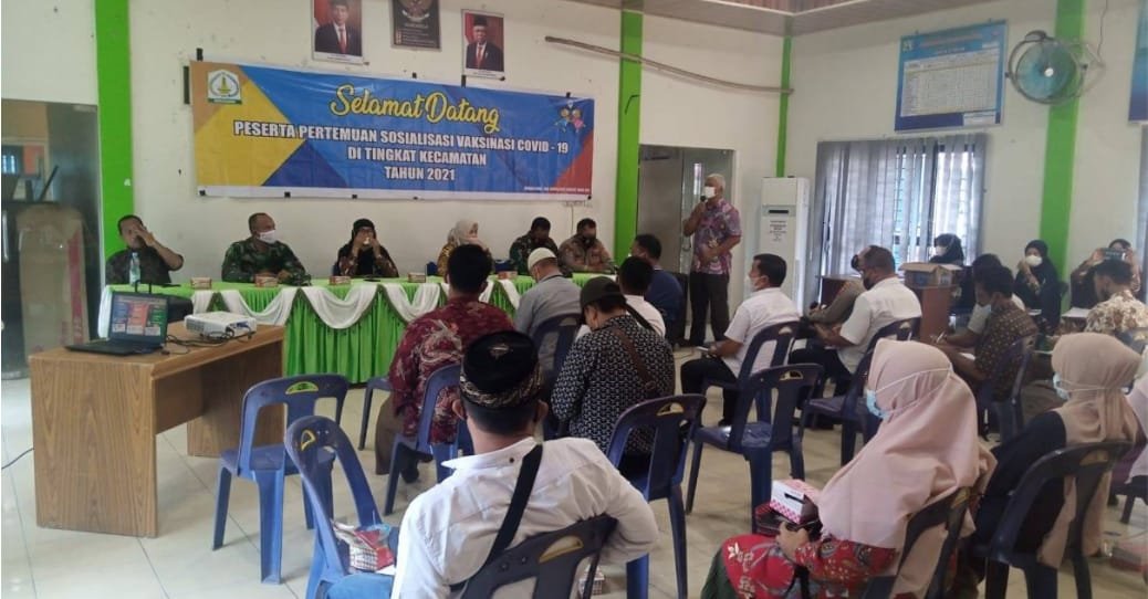 MATTANEWS.CO, ACEH TAMIANG-Tim sosialisasi Dinas Kesehatan Kabupaten Aceh Tamiang selenggarakan, sosialisasi vaksinasi covid-19. Kegiatan tersebut berlangsung di Aula Kantor Kecamatan Kejuruan muda, Kabupaten Aceh Tamiang, Jum’at (19/11/2021).