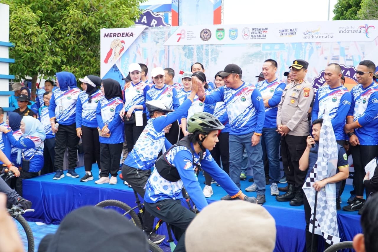 MATTANEWS.CO, OKU SELATAN – Event Tahunan Sriwijaya Ranau Gran Fondo (SRGF) 2023 kembali digelar di pelataran Danau Ranau Kecamatan Banding Agung Kabupaten Ogan Komering Ulu (OKU) Selatan. Pelaksanaannya ditandai dengan pengibaran bendera start oleh Gubernur Sumsel, Herman Deru pukul 07.00 WIB, Sabtu (19/8) pagi.