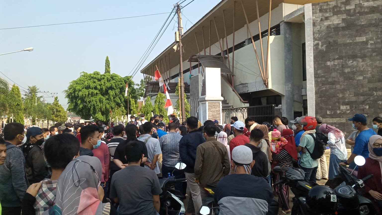 MATTANEWS.CO, PURWAKARTA – Ratusan warga berkerumun di pintu gerbang Gedung Olah Raga (GOR) Purnawarman Kelurahan Sindangkasih Kabupaten Purwakarta Jawa Barat (Jabar), Sabtu (28/8/2021).