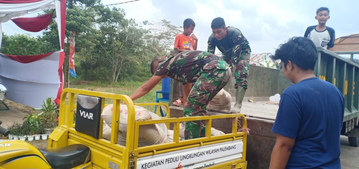 MATTANEWS.CO, PALEMBANG – Giat TMMD di kampung Jawi yang telah memasuki penghujung di Minggu kedua mulai menambahkan pasokan material dengan menggunakan dumb truk milik kodim 0418.
