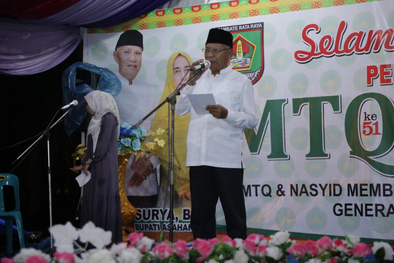 ASAHAN, Mattanews.co – Bupati Asahan, H. Surya bersama pejabat di lingkungan Pemkab setempat hadiri pembukaan MTQ ke-51 dan Festival Seni Nasyid Tingkat Kecamatan Kota Kisaran Barat Tahun 2020, di Jalan Kartini Kelurahan Sendang Sari, Selasa (28/01/2020).