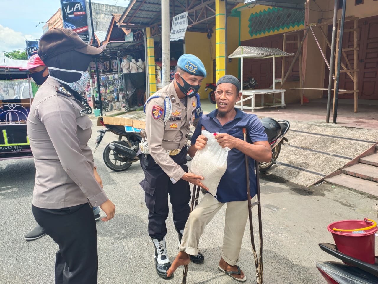 Tak hanya itu, para polisi tersebut juga memberikan sembako berupa beras kepada masyarakat kurang mampu di seputaran Kota Kisaran, Selasa (23/6/2020).
