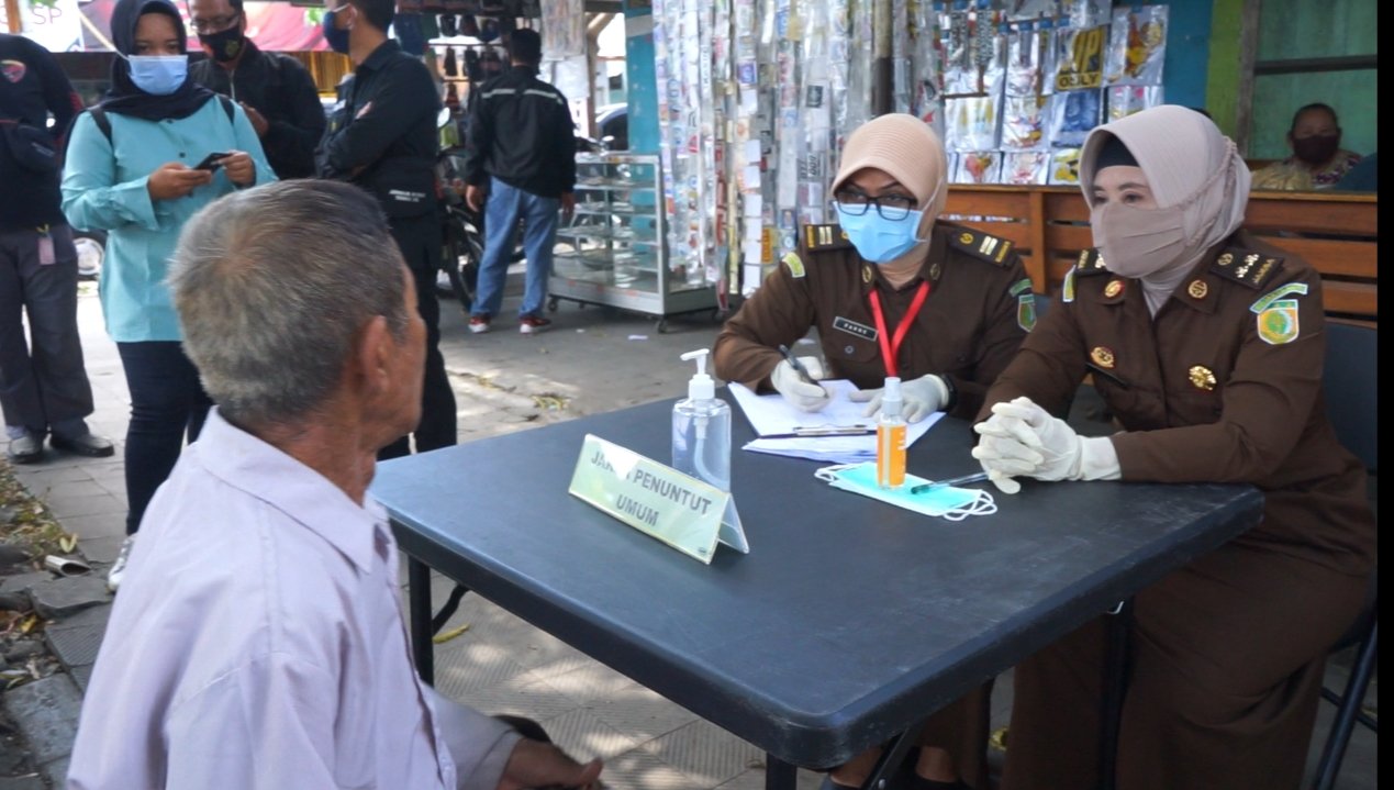 Operasi Yustisi Prokes yang digelar di depan Pasar Garum Kabupaten Blitar ini, melibatkan personel Polres Blitar, Sat Pol PP, Kejaksaan Negeri Blitar, PN Blitar, dan Dinkes.