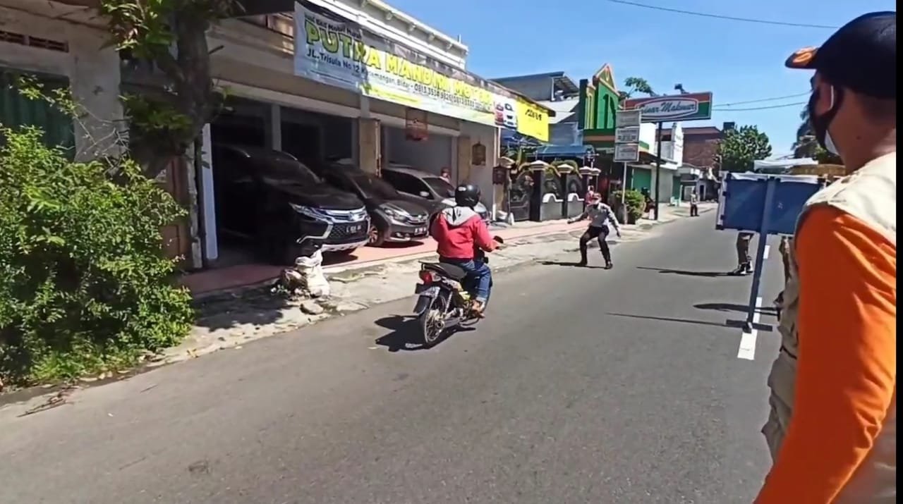 MATTANEWS.CO, BLITAR – Seorang pengendara motor di Kabupaten Blitar Jawa Timur (Jatim), nekat menerobos berikade petugas gabungan yang menggelar operasi yustisi, pada hari Kamis (18/2/2021).