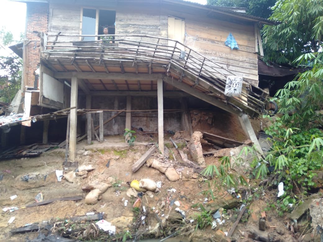 Dia mengatakan bahwa rumahnya sudah tiga kali ambruk, akibat longsor di sana. Kerusakan pertama kali terjadi pada bulan Desember akhir tahun 2020.