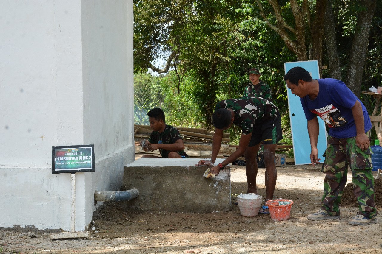 Di kerjakan secara gotong royong, Satgas TMMD bersama warga saling berkerja sama selesai target sasaran pembangunan fisik TMMD renovasi masjid Nurul Imam.