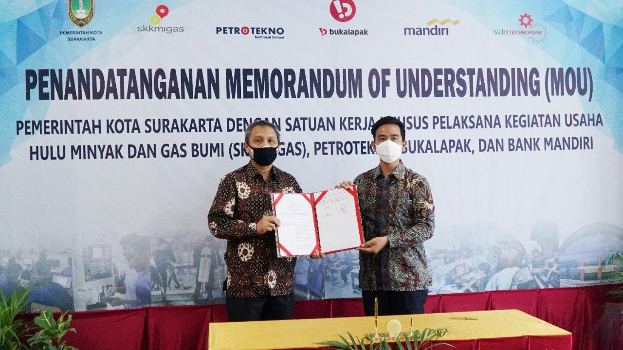 Nota Kesepahaman ditanda tangani oleh Deputi Dukungan Bisnis SKK Migas, Rudi Satwiko dan Walikota Surakarta, Gibran Rakabuming Raka, Jum’at (17/9/2021) di Solo Technopark, Solo.