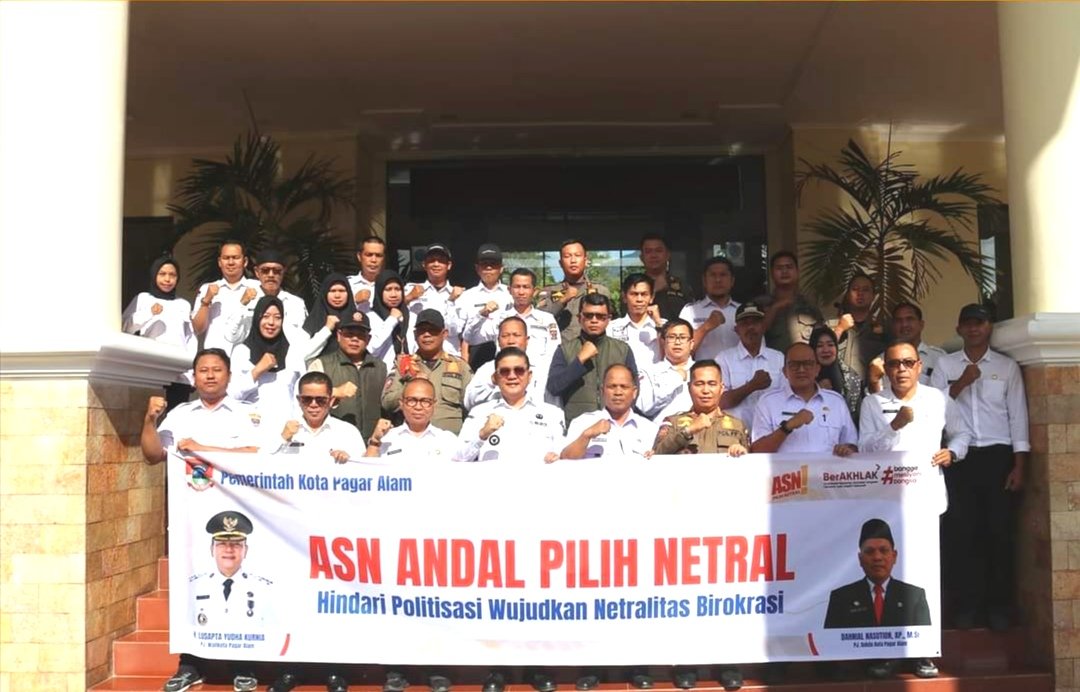 “Saya harapkan kepada seluruh pegawai ASN di Kota Pagar Alam wajib menjaga netralitas dalam menyikapi situasi politik sekarang ini. Tidak terpengaruh atau memengaruhi pihak lain untuk melakukan kegiatan yang mengarah pada keberpihakan atau ketidaknetralan,” tegasnya.