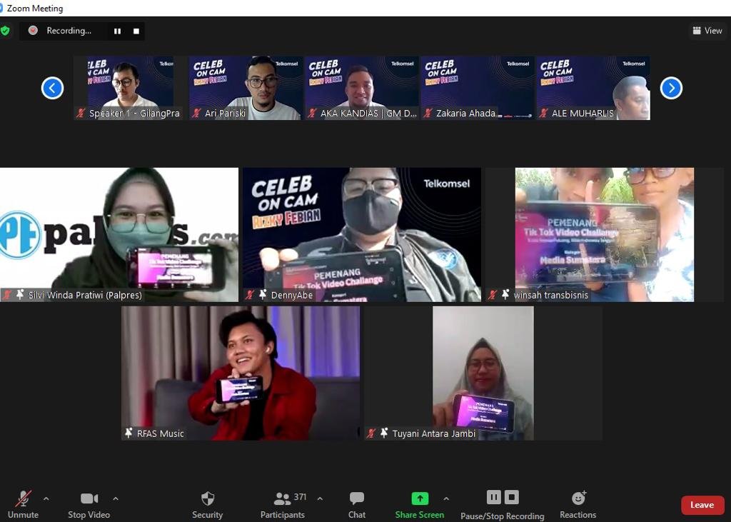 MATTANEWS.CO, PALEMBANG – Telkomsel kembali gelar Celeb on Cam, kegiatan hiburan dan bincang inspiratif bersama selebriti serta rekan-rekan media, secara virtual. Kegiatan yang juga ditayangkan langsung melalui channel DGOne MAXstream ini menghadirkan sosok musisi sekaligus penyanyi populer Rizky Febian. Secara khusus Telkomsel menghadirkan acara ini untuk membuka peluang dalam memperkuat adopsi layanan digital bagi para jurnalis, komunitas dan pelangan di wilayah Sumatera.