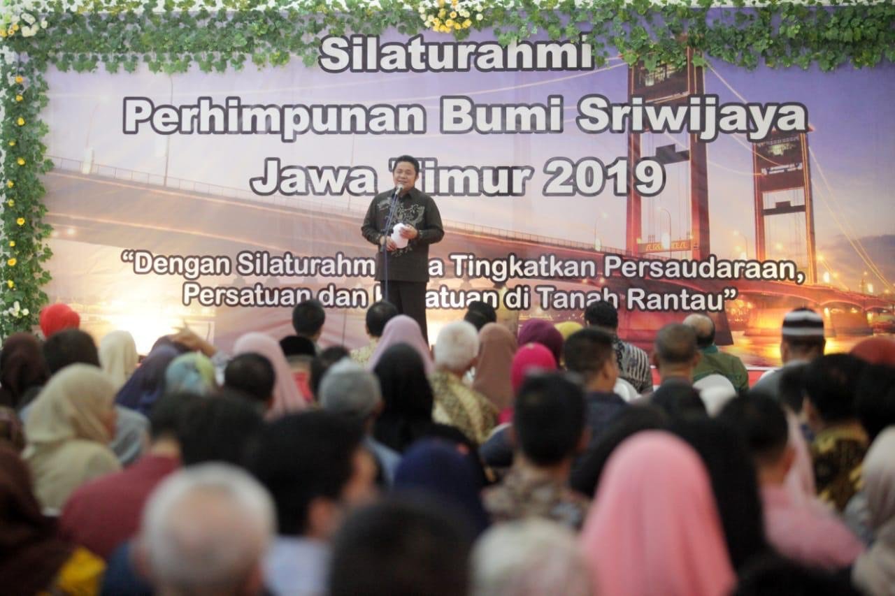 Harapan tersebut disampaikan Gubernur Sumsel H. Herman Deru dalam acara temu kangen, silaturahmi dan halal bihalal dengan Keluarga Besar Bumi Sriwijaya Jawa Timur yang berlangsung di auditorium SMKN 5 Surabaya Jalan Mayjen Prof. Dr. Moestopo No. 167-169, Mojo Kec. Gubeng Kota Surabaya, Sabtu (27/07/2019).