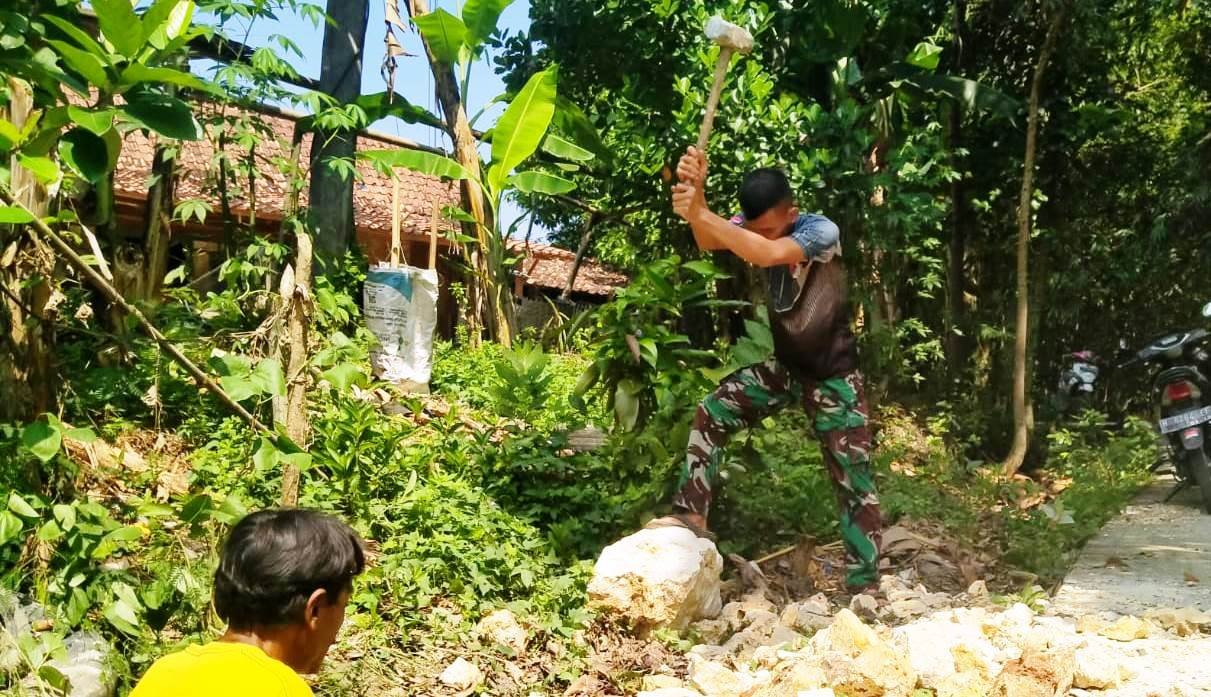Ya, Prada Yudha anggota Satgas TMMD Tambakselo yang mempunyai keahlian belah batu harus kerja keras menyusul untuk mendukung pembangunan bak air di lokasi TMMD, yang terus dikebut penyelesaiannya.