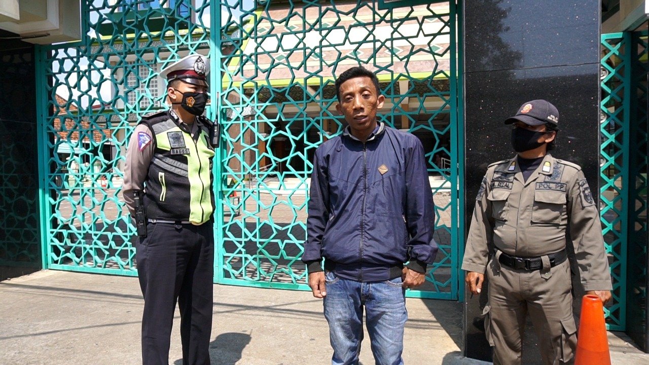 BATANG, Mattanews.co – Delapan pengguna jalan yang melintas di Jl. A. Yani tepatnya depan Masjid Agung Darul Muttaqin Batang diberikan sanksi melafalkan Pancasila lantaran tak memakai masker.