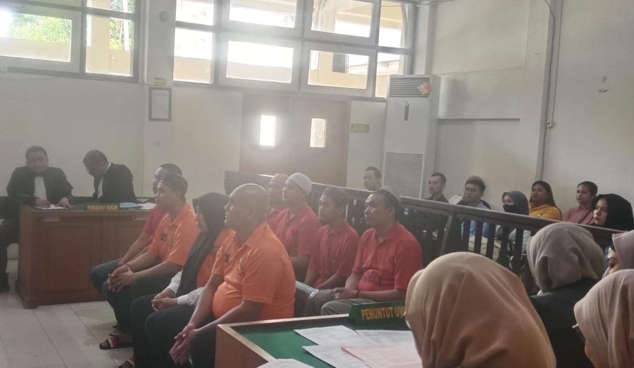 Sidang diketuai oleh majelis hakim Romi Sinatra SH MH, dihadiri oleh para terdakwa didampingi oleh tim kuasa hukumnya, JPU Kejati Sumsel, Ursula Dewi SH MH, Desmilita SH, Misrianti SH, dan Prita Sari SH, secara bergantian membaca dakwaan terhadap delapan terdakwa.