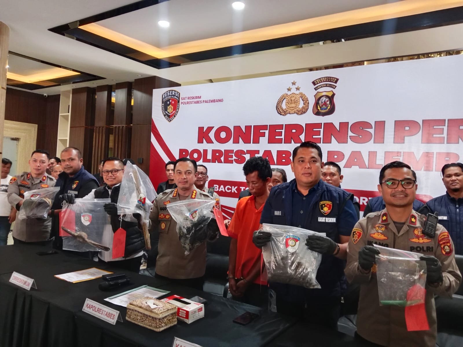 “Tertangkapnya tersangka ini berkat kecermatan dan kecekatan petugas dalam menggunakan alat berbagi tehnik kepolisian Scientific Investigation, berhasil ditangkap berikut barang bukti yang mengarah semua tersangka,” papar Direktur Reserse Kriminal Umum Polda Sumsel, Kombes Pol M Anwar Reksowidjojo didampingi Kapolrestabes Palembang, Kombes Pol Harryo Sugihhartono, saat press release.