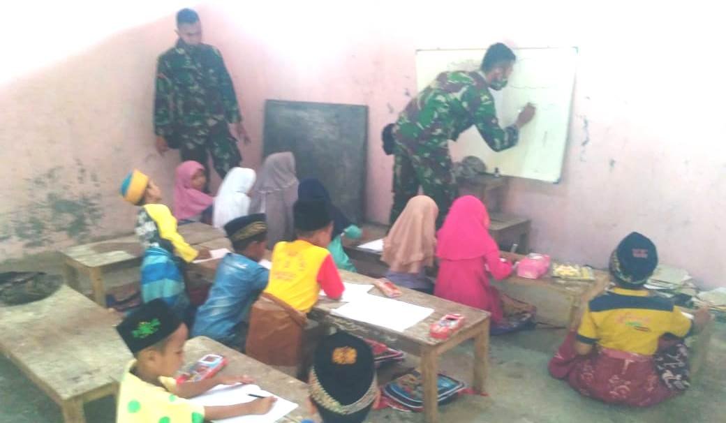 Namun demikian bagi salah satu TNI anggota Satgas TMMD ini, Prada Muhtarom yang dari satuan Yon Arhanudse 15/Semarang, kegiatan mengajar ngaji kepada anak-anak di desa sasaran tetap harus berjalan.
