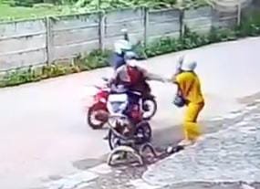 Teti mengatakan lantaran takut melihat kedua pelaku membawa senjata tajam, ia turun, saat mau ambi kunci motor tangannya disabet pakai mandau oleh pelaku yang dibonceng.