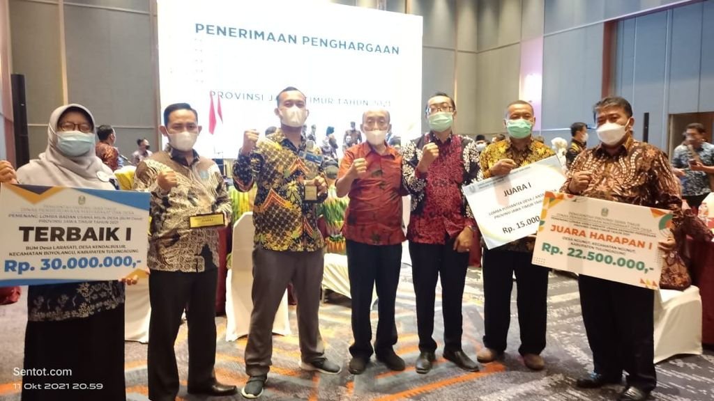 “Jadi begini, penghargaan tersebut diraih oleh 3 Desa yaitu Kendalbulur Kecamatan Boyolangu, Suruhan Lor Kecamatan Bandung dan Desa Ngunut Kecamatan Ngunut dalam lomba yang digelar oleh Pemerintah Provinsi Jawa Timur,” kata Kepala Dinas Pemberdayaan Masyarakat Desa (DPMD) Kabupaten Tulungagung Eko Asistono di Pendopo Kongas Arum Kusumaning Bongso, Rabu (13/10/2021) Pagi.