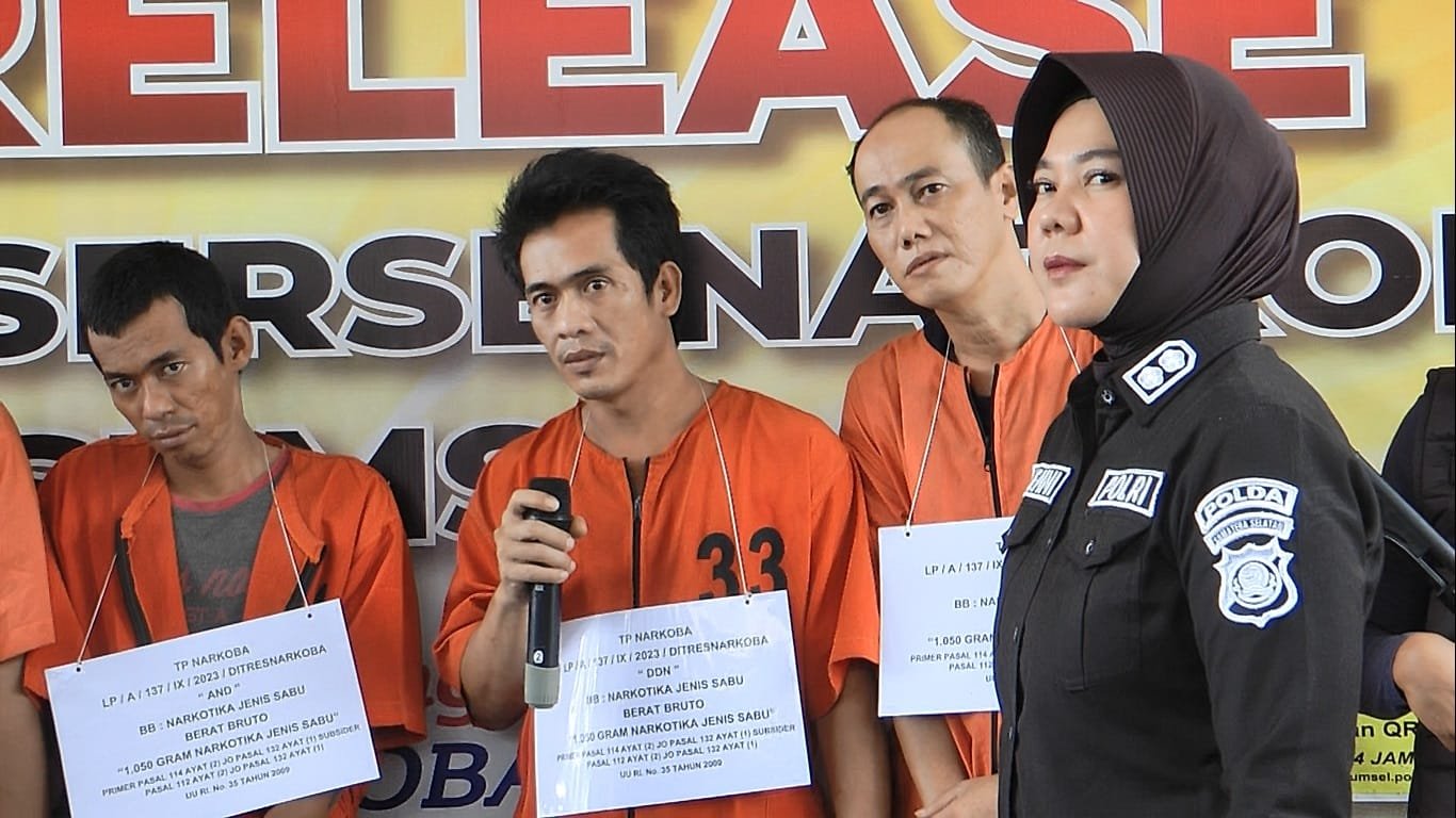 MATTANEWS.CO, PALEMBANG – Tiga kurir narkoba, Deden Setiawan, Andi alias Longat, Andrean dicokok anggota Ditres Narkoba Polda Sumatera Selatan (Sumsel). Dari tangan tersangka, petugas turut menyita 1050 gram sabu, Rabu (11/10/2023).