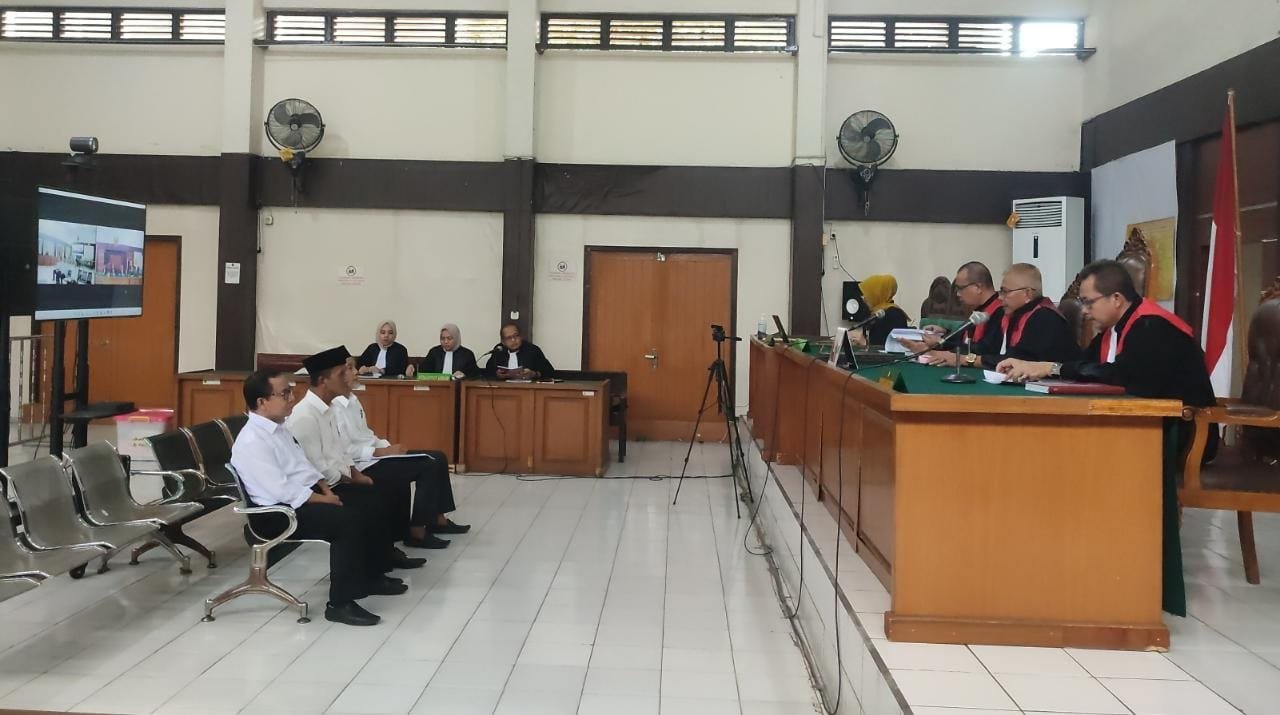 Sidang diketuai majelis hakim Sahlan Effendi dengan menghadirkan tiga terdakwa secara langsung dimuka persidangan, dengan Agenda pembacaan Dakwaan dari Jaksa Penuntut Umum (JPU) Kejari Banyuasin.
