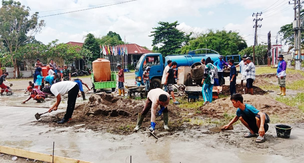 Dari pantauan dilapangan, dari pukul 08.00 pagi, terrlihat ratusan masyarakat bekerjasama dan bahu membahu dengan semangat kebersamaan membersihkan lokasi pembangunan, mengaduk adonan semen dan mengecor lapangan. Kegiatan gotong royong berakhir pukul 17.00 wib.